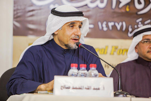 ثم تحدث الخطاط عبدالله المحمد صالح العضو المؤسس لدار الخط العربي بالأحساء، عن الخط العربي واللغة العربية، فقال إن اللغة العربية لغة توقيفية نازلة من السماء، لافتًا إلى أن قوانين وأنظمة الخط العربي وضعها أبو علي محمد ابن مقلة، داعيًا إلى تأسيس مدرسة نقدية في فن الخط العربي.