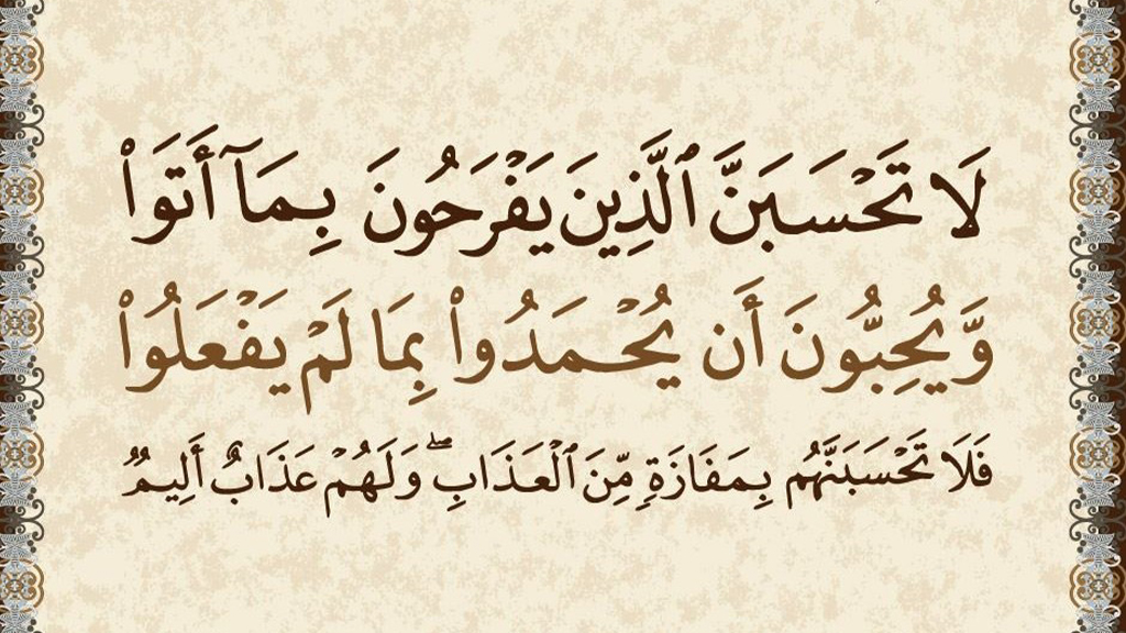 {يَفْرَحُونَ بِمَا أَتَوْا وَيُحِبُّونَ أَنْ يُحْمَدُوا بِمَا لَمْ يَفْعَلُوا}
