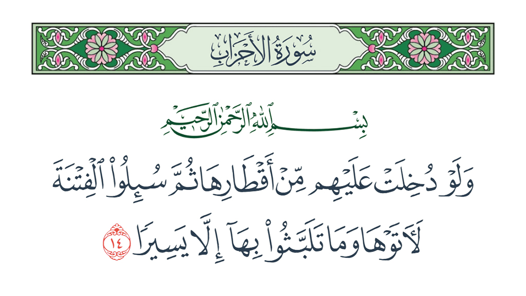 معنى قوله تعالى: {وَلَوْ دُخِلَتْ عَلَيْهِمْ مِنْ أَقْطَارِهَا..}